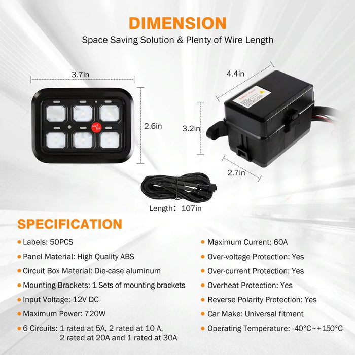 * Universal 6 switch panel relay system. power up to 6 lights & accessories from one convenient place.