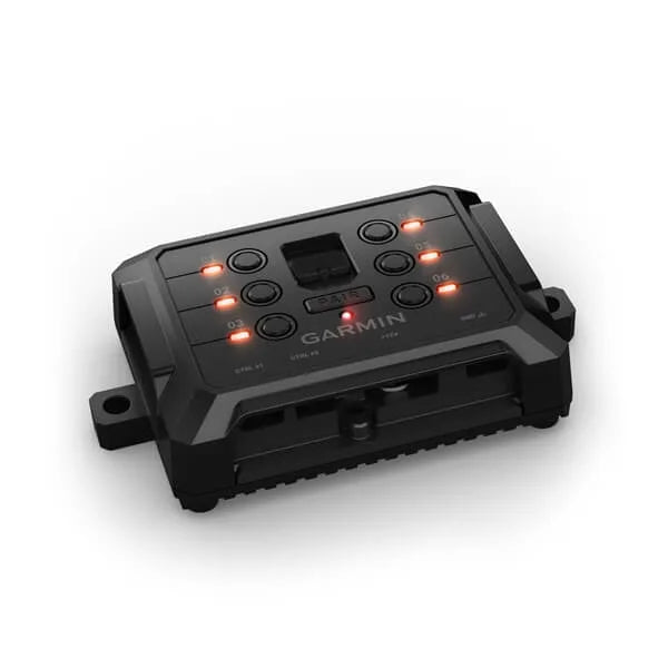 With a total of six circuits rated at up to 30 amps each, you can power and control all types of 12-volt accessories from one Garmin PowerSwitch digital switch box.