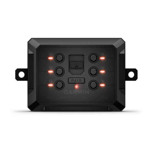 The Garmin PowerSwitch digital switch box uses BLUETOOTH® wireless connectivity to program and operate your accessories from compatible1 Garmin navigators or smartphones.