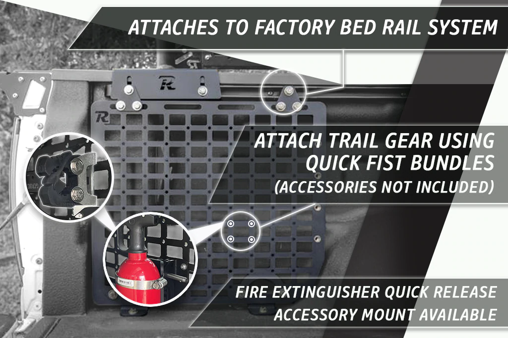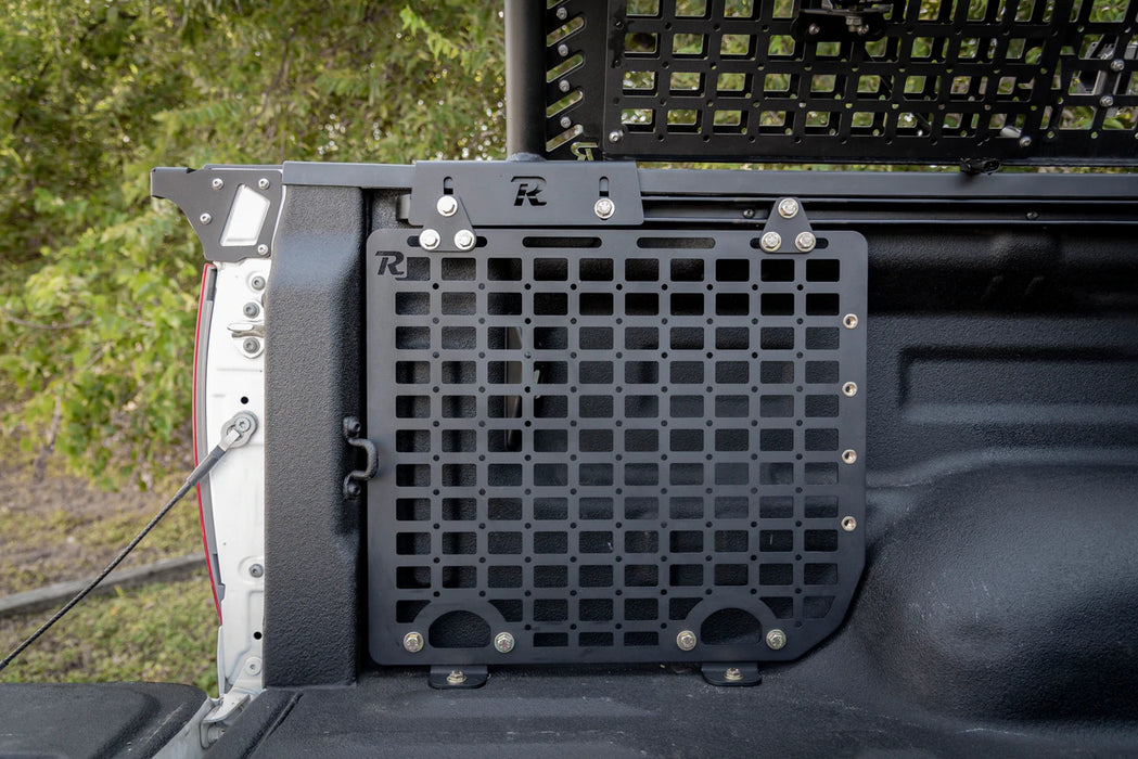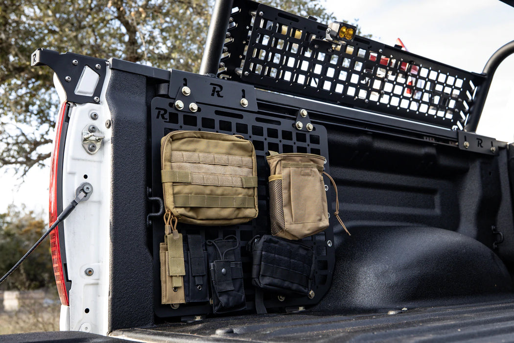 Rago Fabrication Toyota Tundra Modular Storage Panel was designed to withstand the toughest trails keeping your items secure. You can attach your trail gear using a variety of attachment systems including a variety of tactical solutions. This system is easy to install and does not require any drilling or altering of your vehicle.
