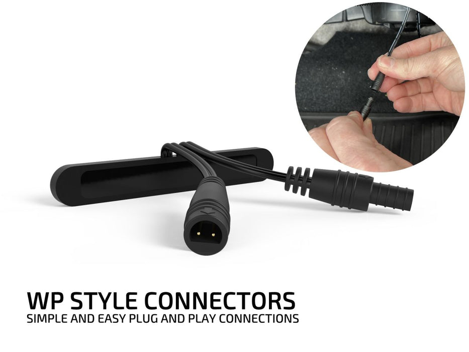 Plug-n-Play No splicing or tapping into your factory wires! The Redside Electric OEM-style breakout harness simply plugs into the A-pillar wiring harness. From there, connections are easily made to the PWM module and two striplight bars. For more detailed instructions see the instructions tab.